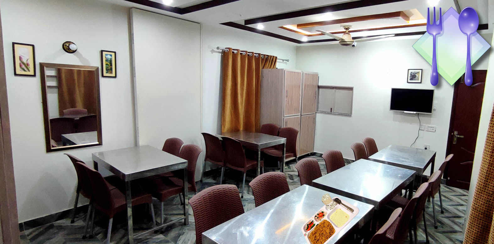 The mess hall is furnished with Huge 50" LED TV Screen, dining tables, inverters, deep freezers, water filters, fire extinguishers etc. Proper care is taken to keep the mess food hygienic and nutritious.